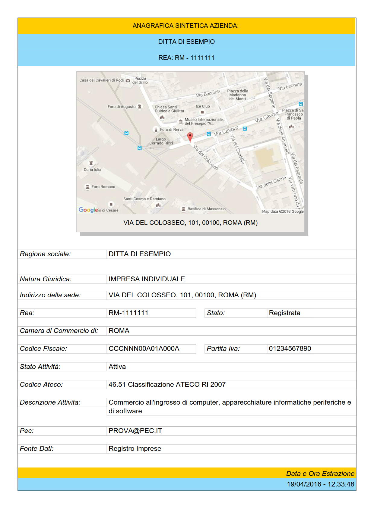 - CCIAA in cui è iscritta